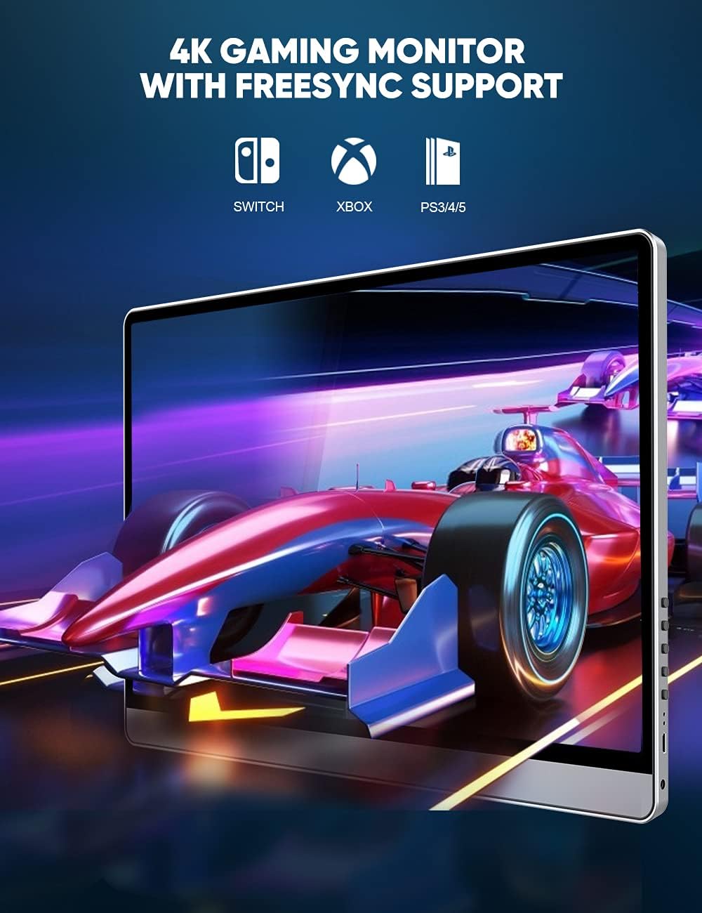 4K Portable Monitor 15.6 Inch UHD 3840x2160 IPS 100% sRGB 60Hz, HDR Freesync Gaming Computer Display with Dual USB C Mini HD for Laptop, PC, MAC, Surface, Phone, PS3, PS4, Xbox, Switch
