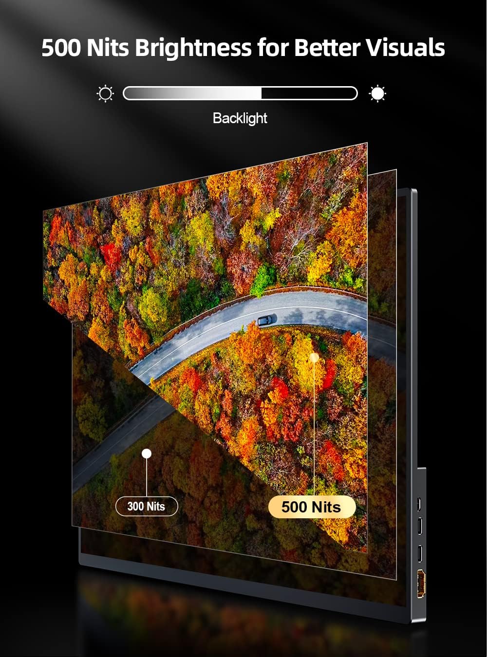 【Frameless & Lightweight & Portable】The portable screen for laptop adopt ultra slim design(0.17"), lightweight(1.6lb), which make it suitable for taking ON-THE-GO to anywhere, achieve real portable and travel friendly. The 0.17 inch 3 sides ultra-narrow bezel design, giving you an immersive visual experience.