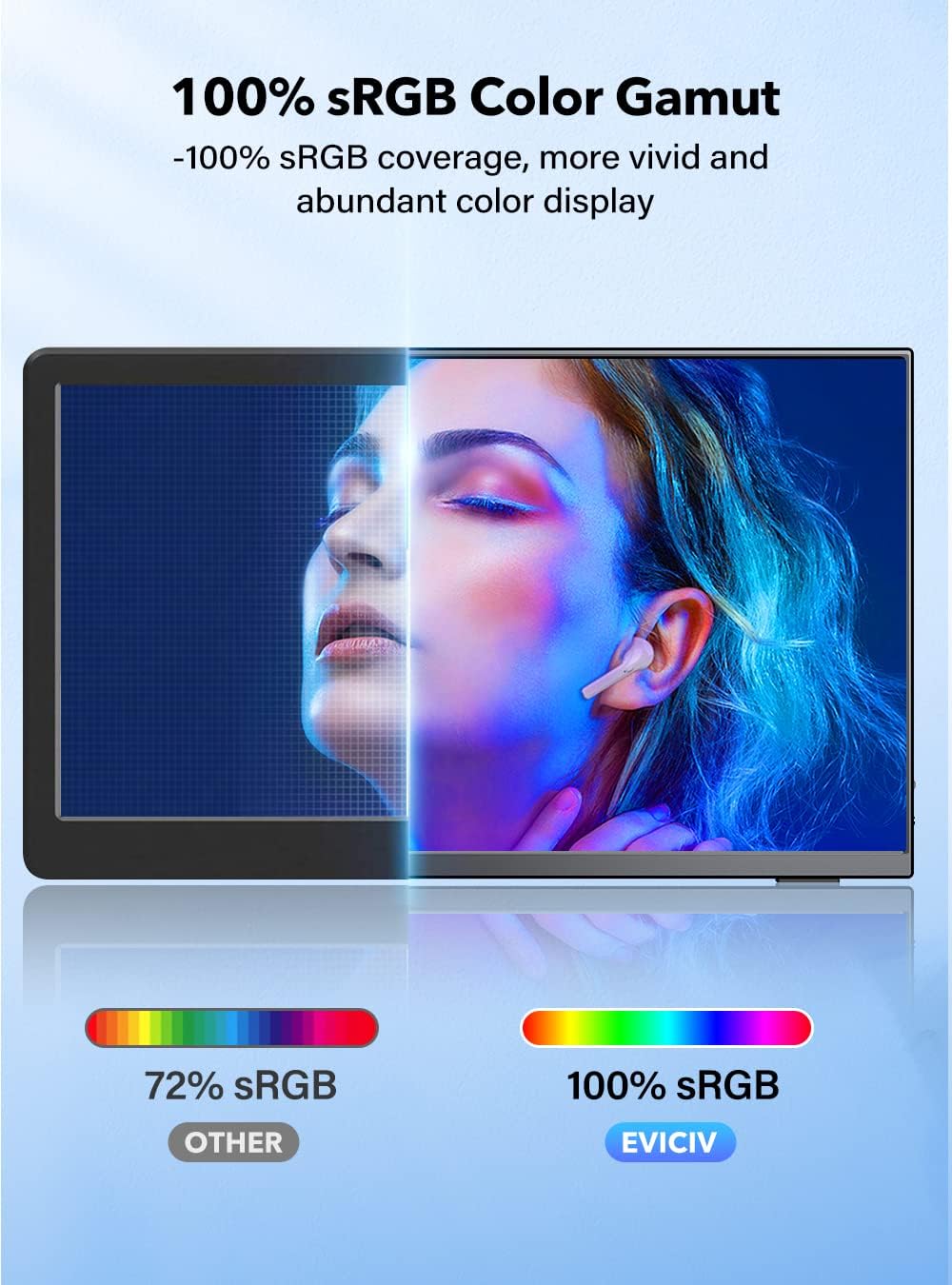 【Multi-Point Portable Touchscreen Monitor】EVICIV external portable monitor is adopted G+FF technology, provide more precise and sensitive touch, compatible with system of Mac, PC, & Chrome, just connect the USB cable to your device to achieve the touch function. NOTE: All gaming device and mobile phone without full featured type C function can not get touch function
